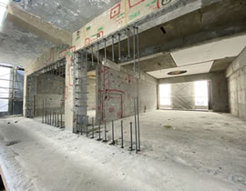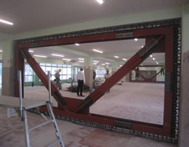 新設壁や鉄骨ブレース等への無収縮モルタルの施工例を紹介します