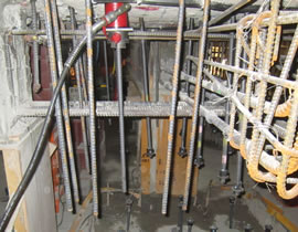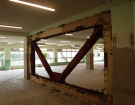 鉄筋コンクリートの構造体を新たに追加する工事、鉄骨ブレースを構造体として追加する工事、柱や基礎部分に免震ゴムやダンパーを取り付ける工事、揺れを制御するダンパーを取り付ける工事等があり、その中での既存構造体と新設構造体を接続する働きをするのが、弊社が行うあと施工アンカー工事となります。
